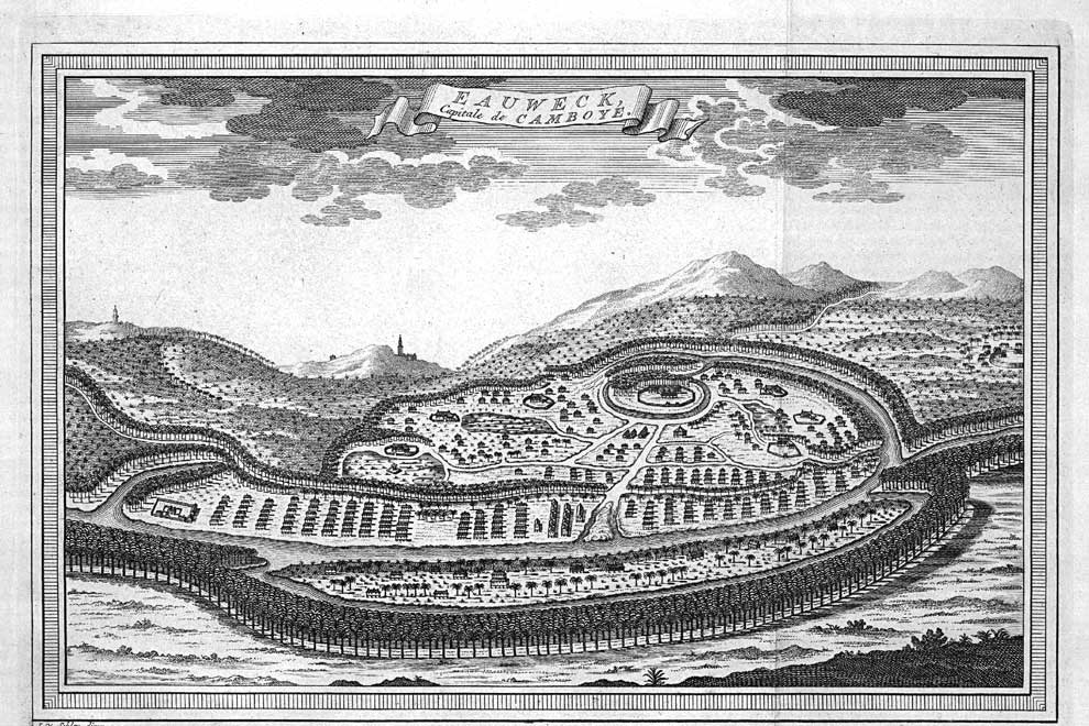 Ancient City of Angkor This map shows the layout of the ancient city of Angkor, capital of the Cambodian Khmer kingdom from the 9th century to the 15th century. The city’s huge stone temples were both civic centers and religious symbols of the Hindu cosmos. Historians believe that Angkor’s network of canals and barays (reservoirs) were used for irrigation.