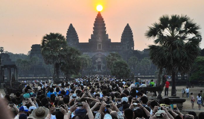 In 2020, the COVID-19 pandemic led to travel restrictions being introduced across the world, which had a severe impact on Cambodia’s tourism sector. As a result, visitors to Angkor Wat plummeted, leaving the usually crowded complex almost deserted. Cambodia, including Angkor Wat, reopened to international visitors in late 2021, but as of the end of 2022 had only received a fraction of its pre-pandemic traffic: a total of 280,000 tourists visited the complex in 2022, versus 2.6 million in 2018. In 2023, the temple saw an increase in numbers over the previous year, having over 400,000 tourists by late July. Tourists reenacting the 2011 game series Temple Run in mid-2024 for social media have drawn criticism from conservationists who warn that it risks damaging Angkor Wat’s structures and carvings and is culturally insensitive.